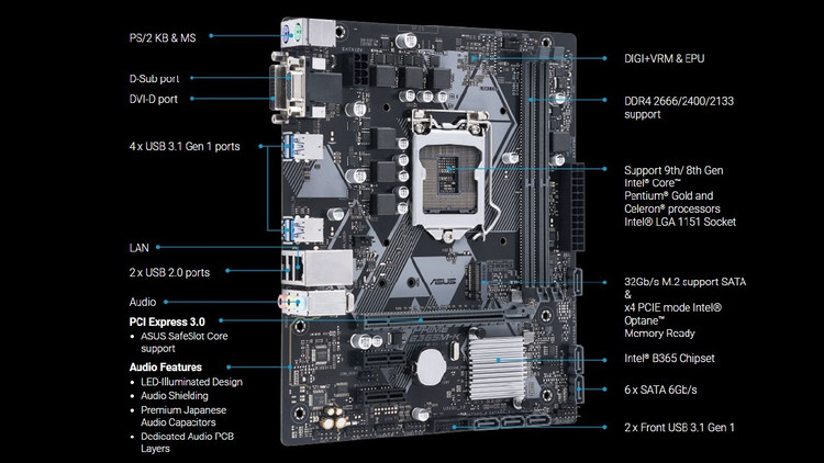 مادربرد ایسوس مدل PRIME B365M-Kیکی از محصولات اقتصادی این شرکت در بین سری مادربردهای مبتنی بر چیپست B365 است. این مادربرد با ابعاد mATX، مخصوص کاربریهای روزمره سطح بالا نظیر طراحی و به کار گیری پردازنده های رده بالا بر روی آن بوده و امکانات متناسبی را در زمینه استفاده روزمره از کامپیوتر در اختیار کاربر قرار می دهد..این مادربرد با سوکت پردازنده اینتل LGA 1151 با قابلیت پشتیبانی از پردازندههای نسل 8 و 9 از سری Core اینتل سازگار است. ترکیبی قدرتمند که قابلیت پشتیبانی از جدیدترین و قویترین سختافزارها را با تعداد بالا دارد. به ترتیبی که میتوان روی این مادربرد چهار اسلات رم از نوع DDR4 تا مجموع ظرفیت 64 گیگابایت و دو رابط PCIe 3.0 که به صورت x16 همراه با فناوری SafeSlot Core برای نصب کارت گرافیک وجود دارد. همچنین امکان نصب انواع منابع ذخیره سازی از هارد دیسک و SSD گرفته تا حافظههای M.2 روی این مادربرد وجود دارد. در مجموع اگر قصد دارید یک کیس قدرتمند برای کاربریهای حرفهای جمع کنید و با قویترین سختافزارها بتوانید عملیات و کارهای روزمره خود را با سرعتی مطلوب انجام دهید، PRIME B365M-Kایسوس میتواند بستری کاملا ایده آل باشد. مدار تغذیه این مادربرد به صورت دیجیتال طراحی شده و بر حسب نیاز و مصرف پردازنده توان و جریان ورودی بهینه می گردد. ماسفت های مدار تغذیه نیز با راهکار حرارتی ویژه ایسوس پوشش داده شده تا همواره خنک کار کند. از لحاظ بعد ظاهری نیز مادربرد با رنگ بندی سفید و مشکی طراحی شده و جلوه ای مدرن و بی نظیر به خود گرفته است. بدیهی است که این مادربرد برای فعالیت های روزمره نظیر استفاده های چند رسانه ای، باید از کارت صوتی رده بالا و متناسبی استفاده کند که در این مدل ایسوس از چیپ صوتی رده بالا Realtek® ALC887 استفاده کرده است تا صدایی دلنشین برای کاربر مهیا گردد. چیپ شبکه Realtek® RTL8111H امکان ارتباط کابلی گیگابیتی را بدون سرباری اضافه به پردازنده در اختیار کاربر قرار داده است. همچنین راهکار محافظتی تمام عیار LAN Guard نیز در این مادربرد برای بهترین عملکرد در شبکه مکمل این بخش حیاتی است. مادربردهای سری Prime ایسوس بیش تست های سخت گیرانه ای مورد سنجش قرار داده می شوند تا به طور کامل عملکردی بی نقص را ارائه کنند.